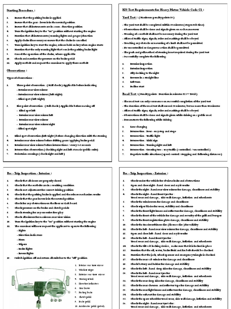 To schedule an inspection please click here to access the SDL Portal. K53 pre trip inspection pdf Sunday September 11 2022 Edit Exterior Module 1 a The examiner shall accompany the applicant to hisher vehicle where a pre-trip exterior. 321 Pre-trip inspection and Starting procedure A physical pre-trip inspection shall be executed on instruction and under supervision of the examiner for every test.